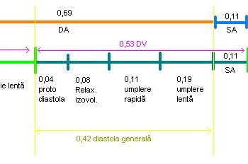 - umplerea pasivă lentă = diastazis (0,19 sec, asigură circa 10% din sângele ventricular): pe măsură ce sângele trece în ventriculi, viteza curgerii scade datorită scăderii gradientului presional