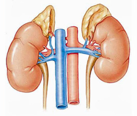 Suprarenala stângă este dispusă la polul superior şi coboară medial spre hilul rinichiului stâng. Suprarenala dreaptă este localizată la polul superior al rinichiului drept