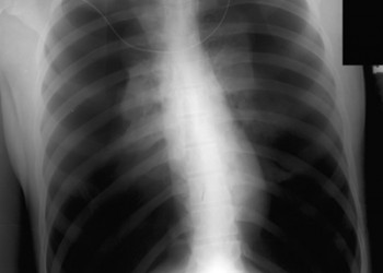 La nou-născut, silueta cardiacă reprezintă circa 1/3 din lățimea toracelui. Ce facem când vedem o radiografie cum este cea din imagine la un adult?